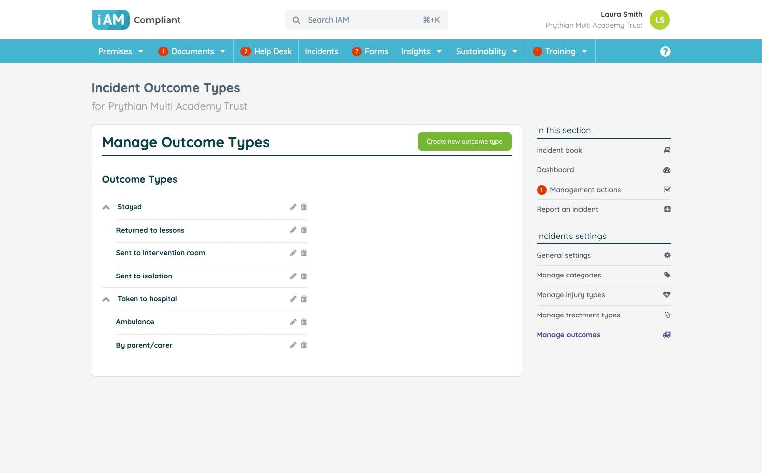You can customise your incidents settings to record custom incident types and turn off the collection of some data.
