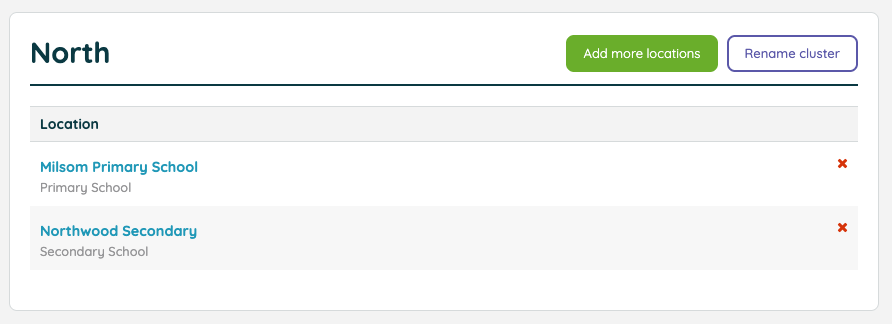Head back to the main locations page to continue adding more clusters. You can define as many clusters as you need, but do bear in mind that each location can only belong to one cluster at a time.